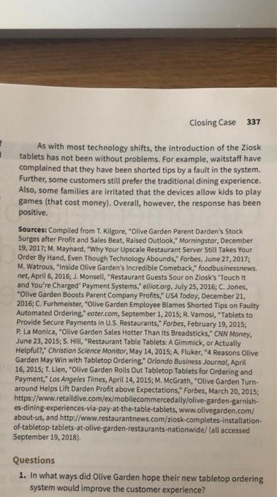 Olive Garden: Yet another chain using tablets on tables for ordering ... Olive Garden has started installing Ziosk computer tablets at all of its U.S. locations so customers can order and pay by touch screen. Ziosk offers a tablet at every table, not only to order and ...
