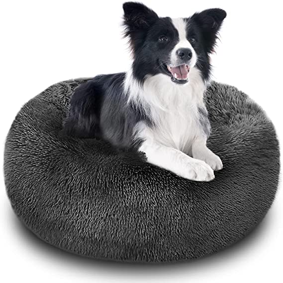 Calming Dog Cat Bed Washable - Faux Fur Round Bed for Small Medium Large Dogs - 19.7"/23.6"/27.6"/31.5" Anti Anxiety Cozy Soft Fluffy Plush Donut ...